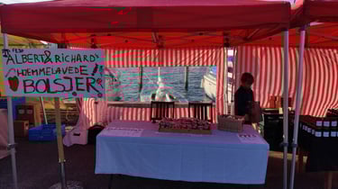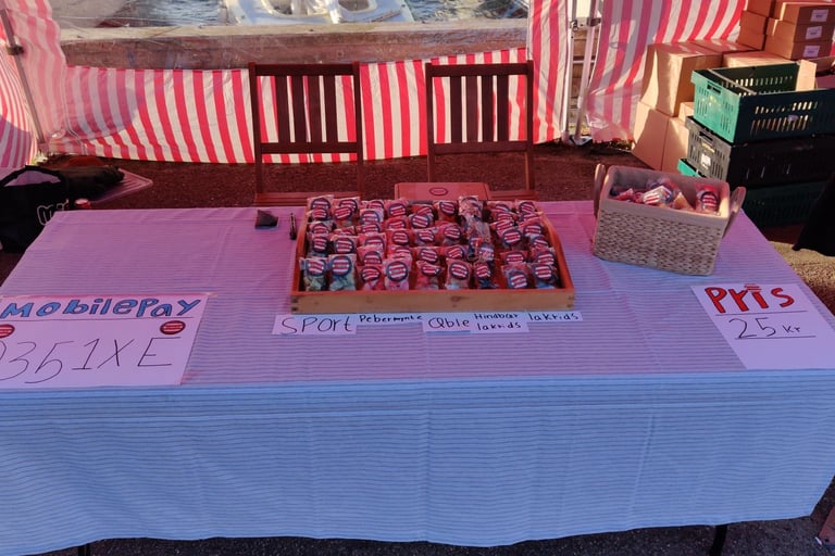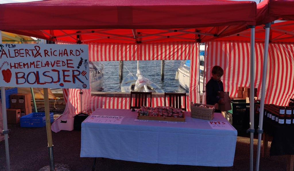Vores første rigtige marked var Æblets Dag på Fejø. Vi havde lavet 100 poser bolcher og anede ikke, hvordan de ville sælge. Men da markedet gik i gang, gik det som varmt brød! Vi solgte rub og stub og stod tilbage med en flot sum (syntes vi dengang i hvert fald) – og vigtigst af alt, en kæmpe oplevelse, der gav os massere af håb for fremtiden.